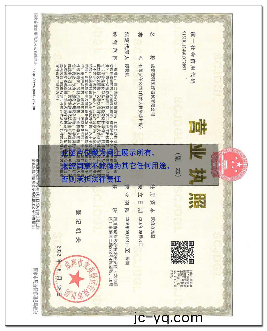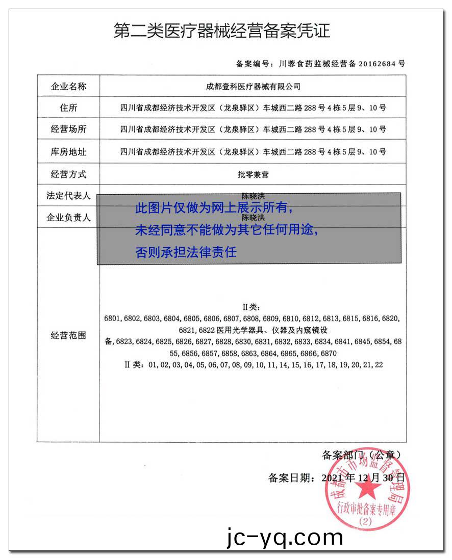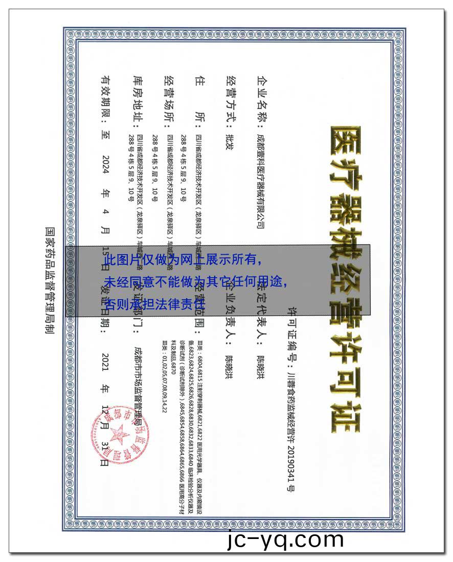 醫(yi)療(liao)器械經營(ying)許(xu)可(ke)證:川(chuan)蓉食藥(yao)監械(xie)經(jing)營許20190341號