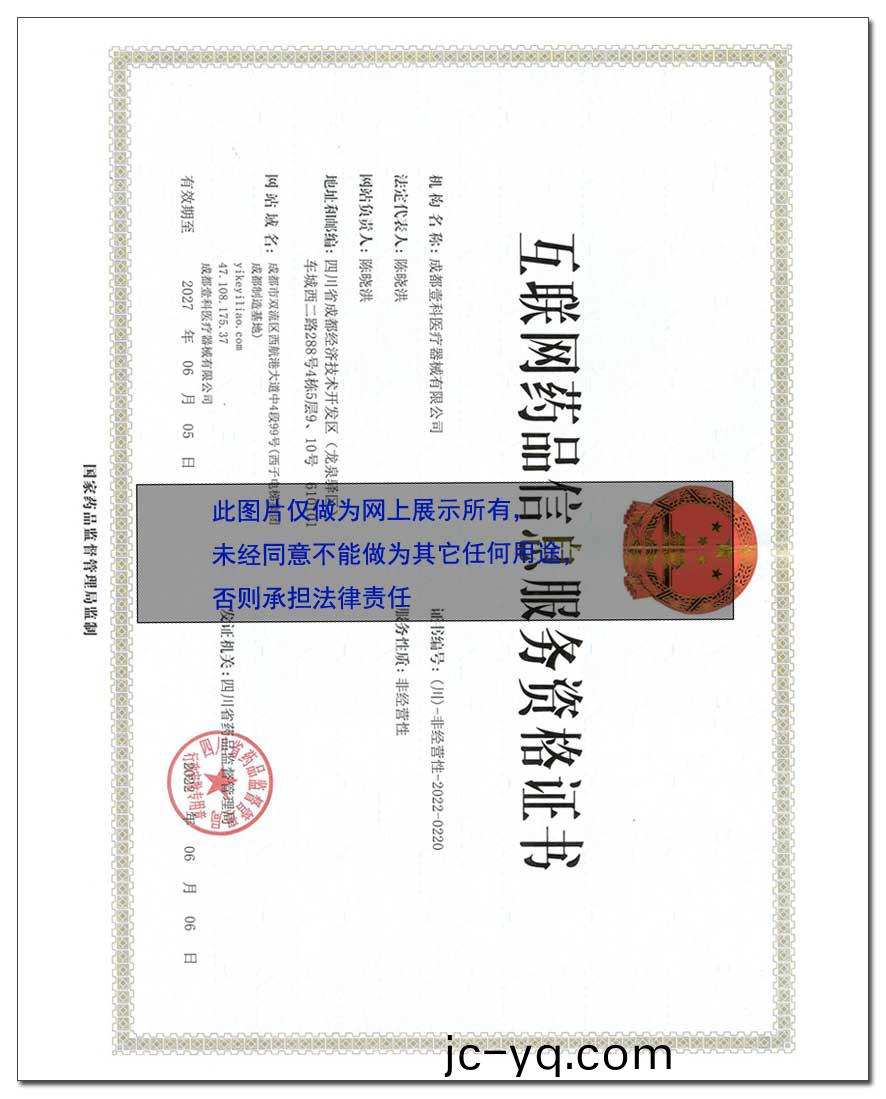 《互聯(lian)網藥品信(xin)息(xi)服務(wu)資(zi)格(ge)證(zheng)書(shu)》編號:(川)-非經(jing)營(ying)性-2022-0220